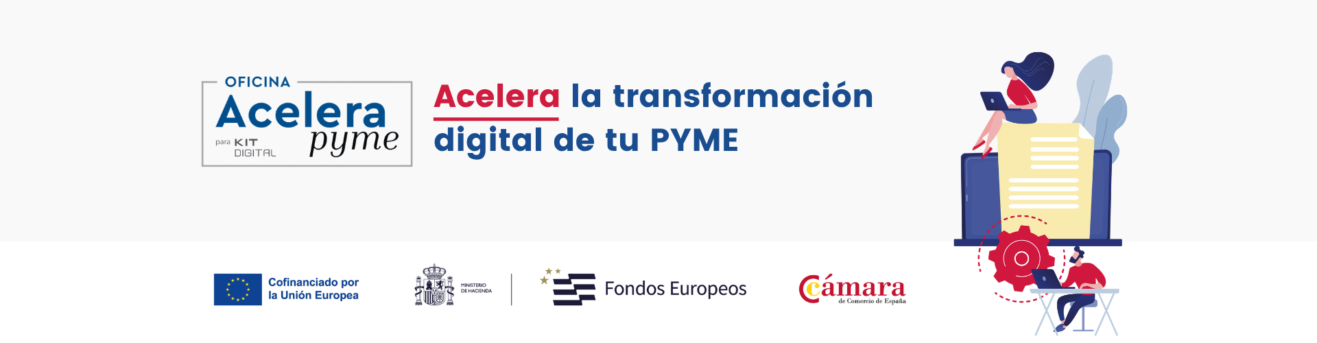 Las Oficinas Acelera Pyme para Kit Digital, impulsadas por Red.es y el Ministerio para la Transformación Digital y de la Función Pública, en colaboración con Cámara de España, buscan acelerar la transformación digital de pymes, micropymes y autónomos. Estas iniciativas están financiadas por el Plan de Recuperación, Transformación y Resiliencia a través de los fondos Next Generation EU, enmarcados en la Agenda España Digital 2026 y el Plan de Digitalización de Pymes 2021-2025.